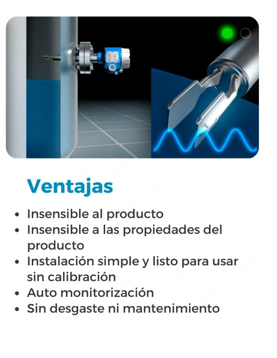 Los sensores de ultrasonidos son una solución probada y económica para la medición de nivel en aplicaciones con líquidos y sólidos granulados. Los instrumentos están disponibles en versión compacta o separada. Este principio de medición se caracteriza por una sencilla planificación y montaje, una puesta en marcha rápida y segura, una larga vida útil y costes de mantenimiento reducidos. Las aplicaciones comunes comprenden productos corrosivos y abrasivos, incluso bajo condiciones ambientales agresivas.